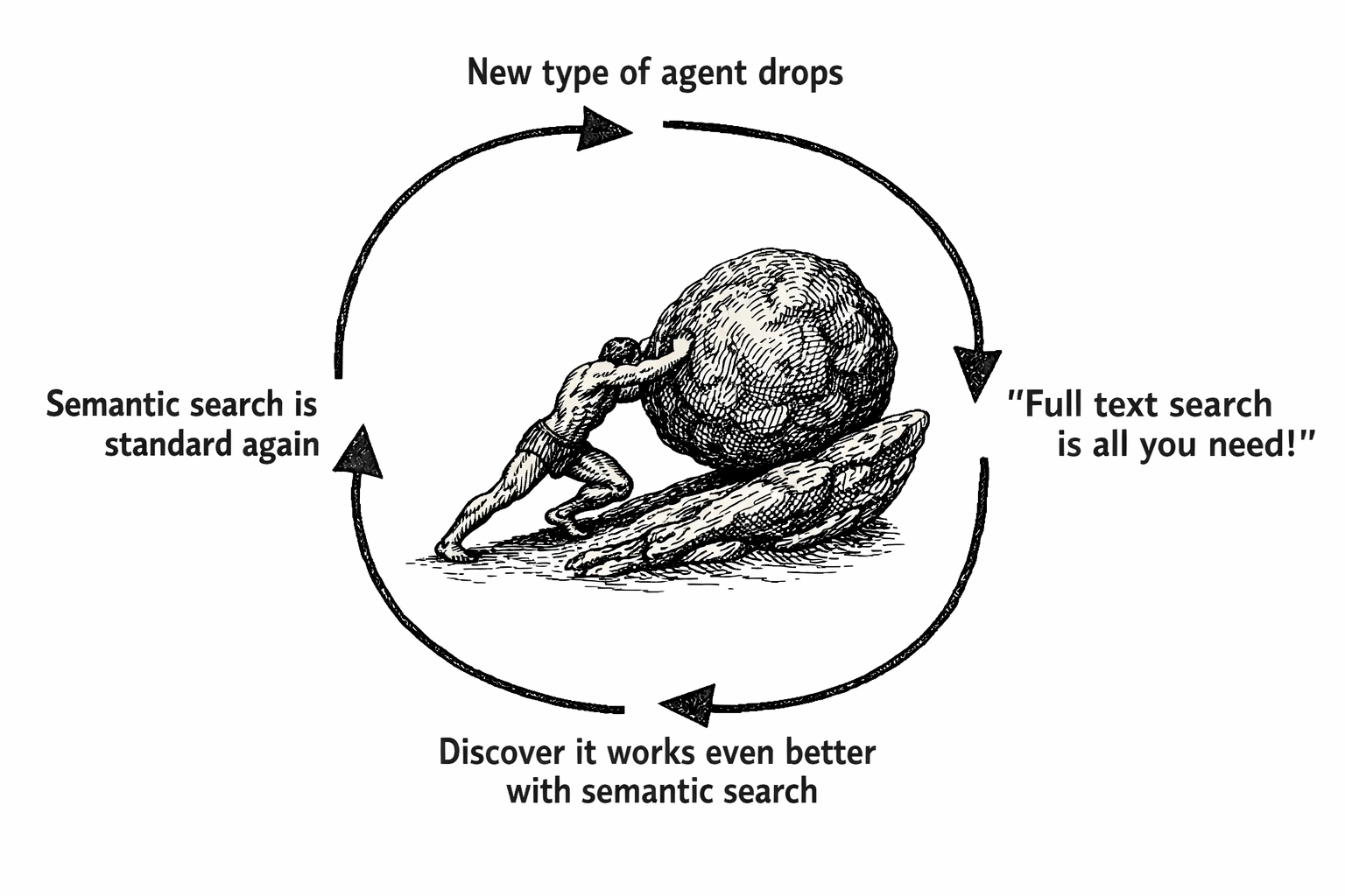 This is the same pattern we’ve always seen with tool-calling agents, then coding agents, and now sandbox agents. From prior work, we learned that dense vector search alone—even with tiny embedding models—is very effective for this category of tasks.